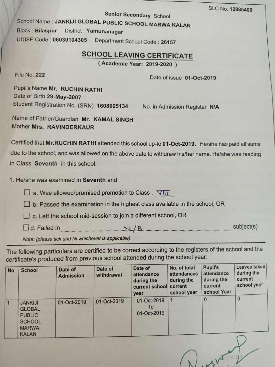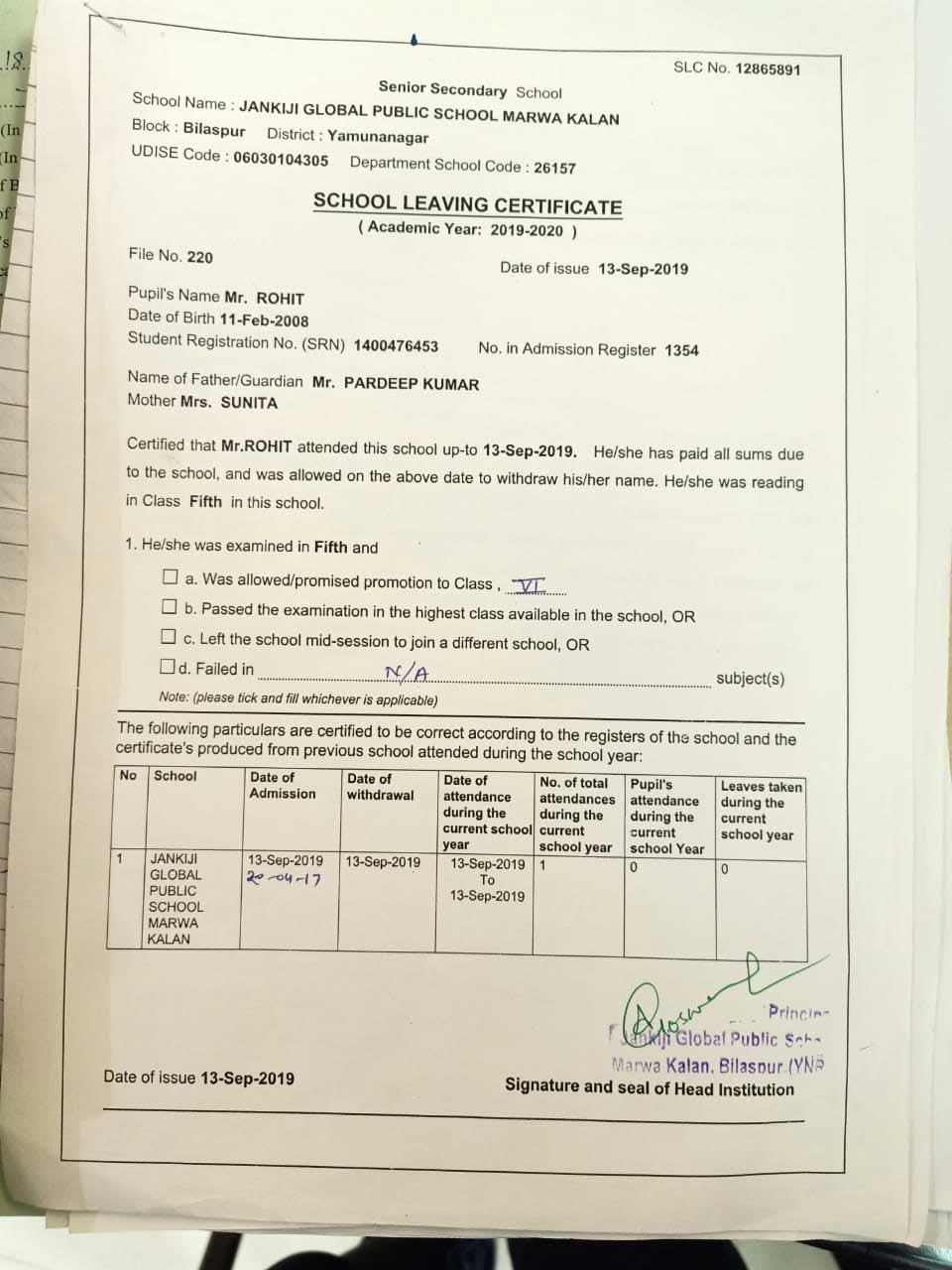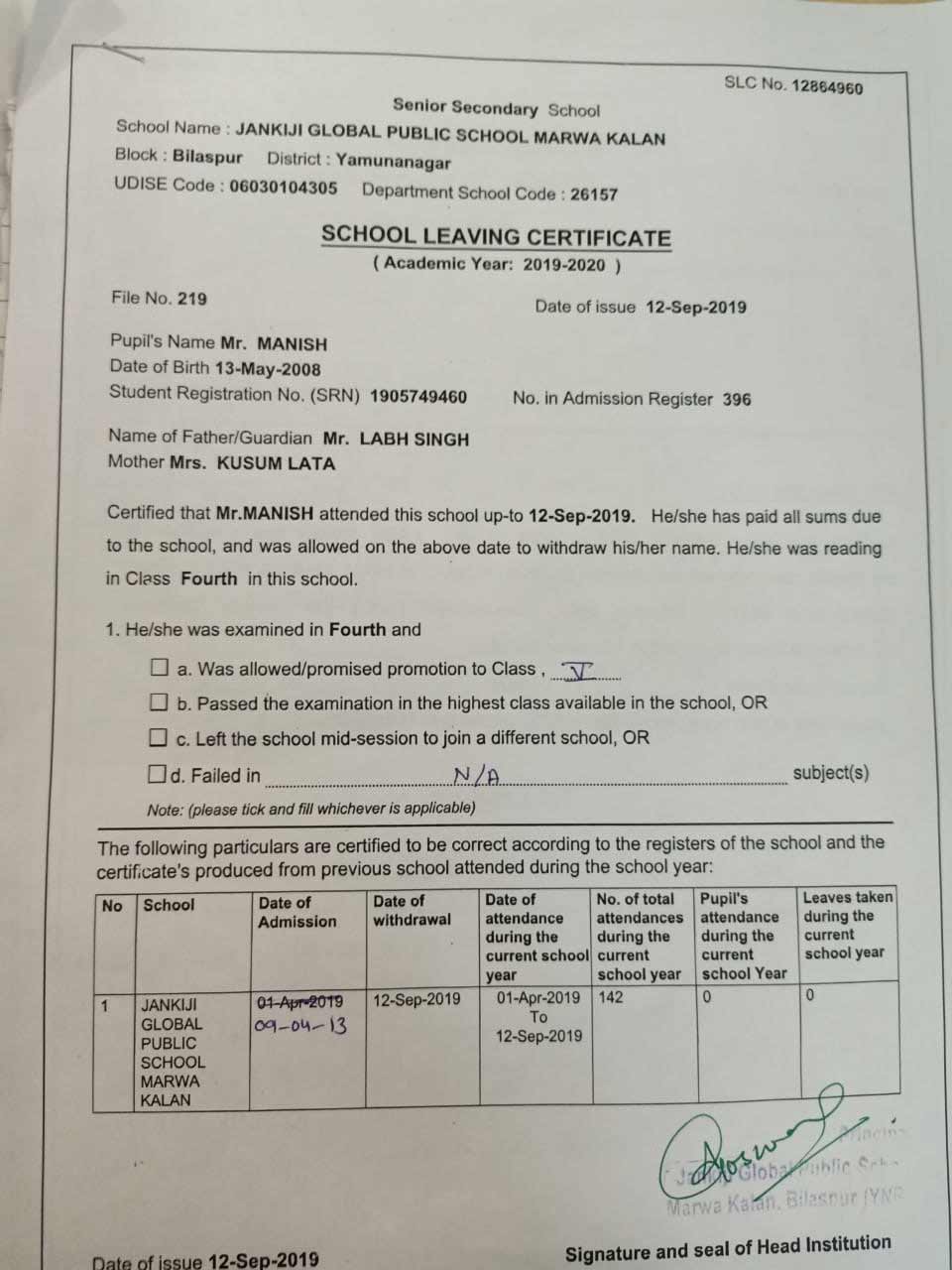 | 219 | Manish | Labh singh | 12-Sep-2019 | View SLC |