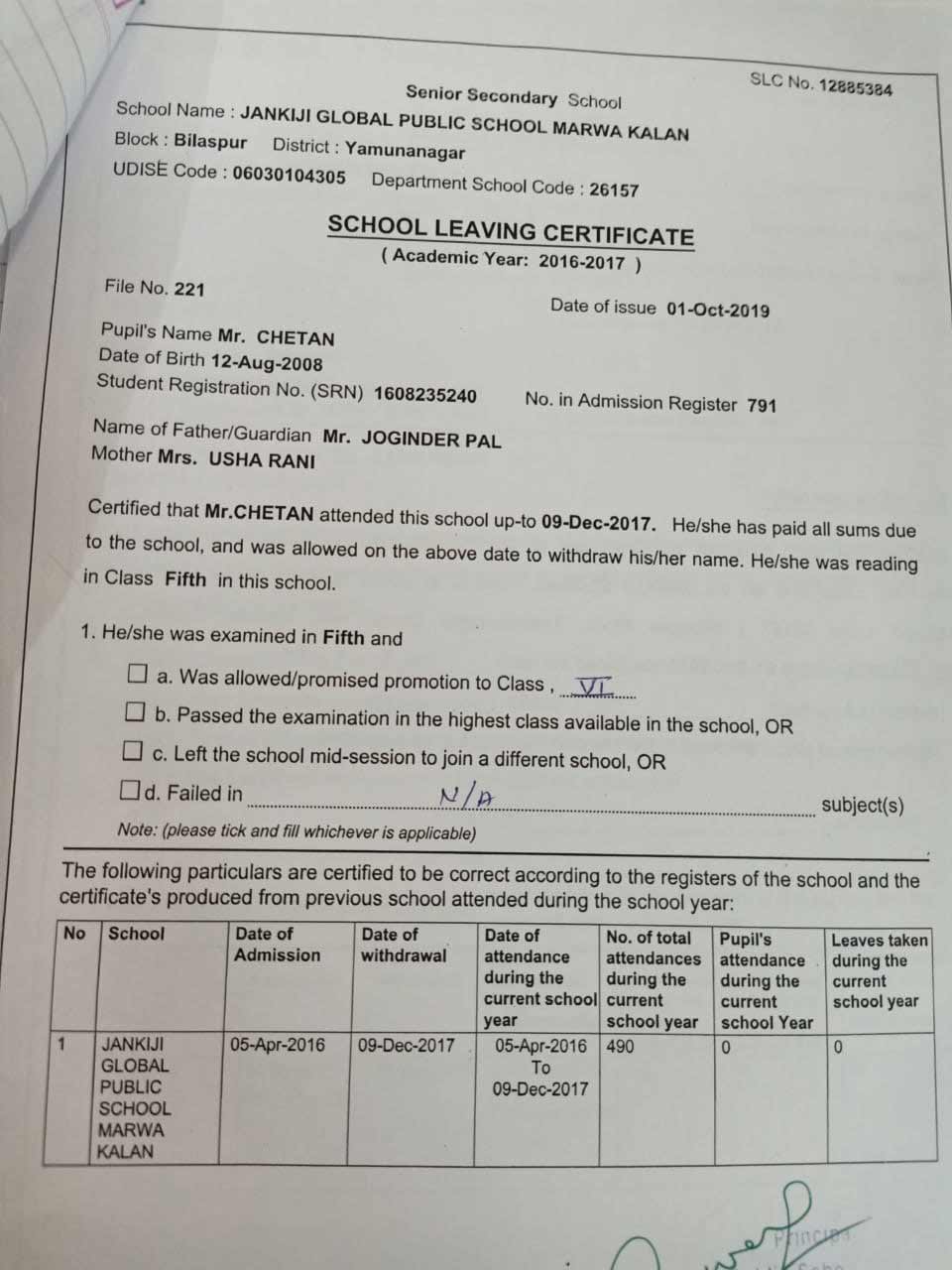 | 217 | Krish | Jasbir Singh | 04-Sep-2019 | View SLC |